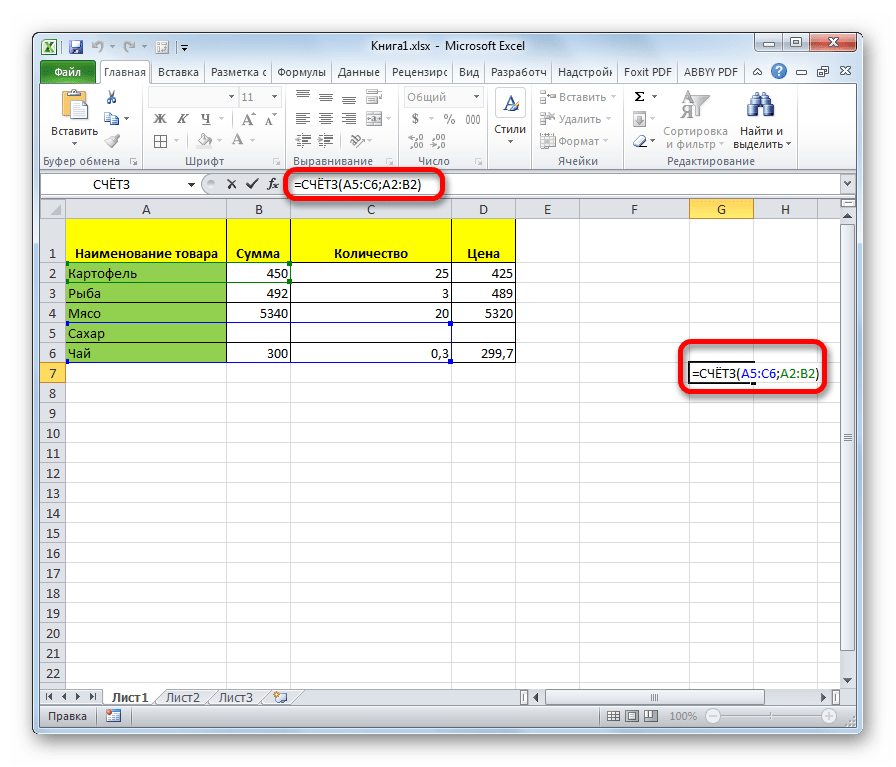Вопрос. Как использовать функцию СЧЁТЕСЛИ для несмежных диапазонов или ячеек?
