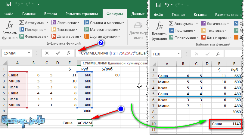 Как посчитать сумму (формулы СУММ и СУММЕСЛИМН)
