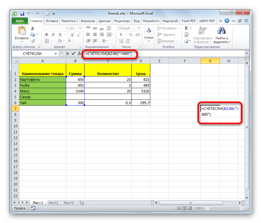 - Ампсанд и кавычки в формулах СЧЁТЕСЛИ