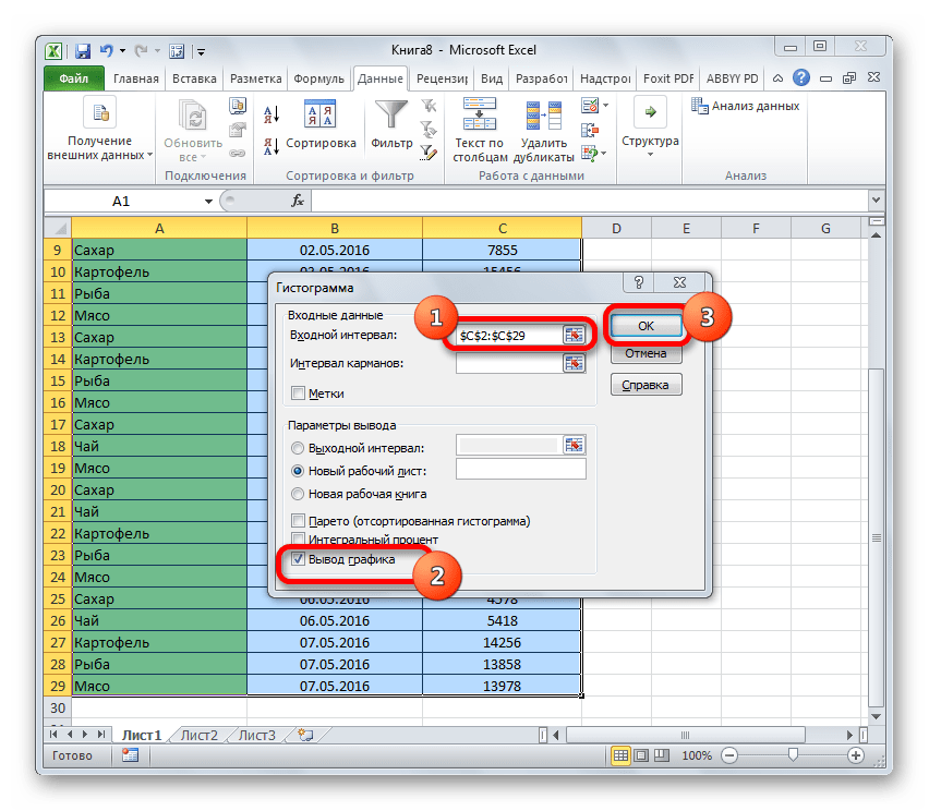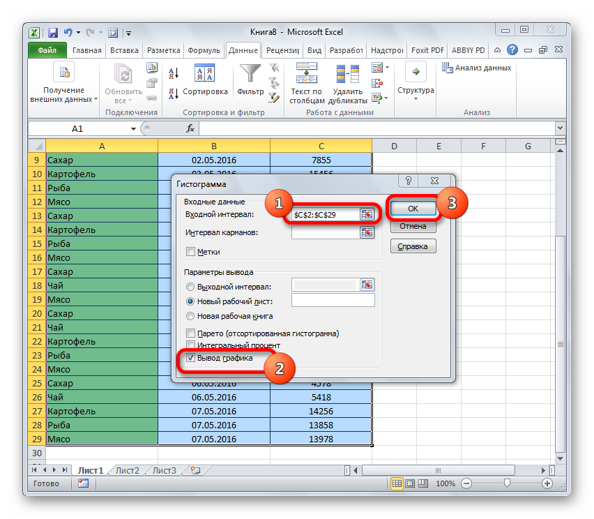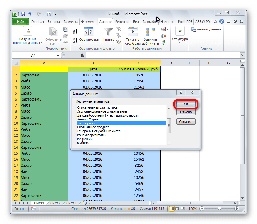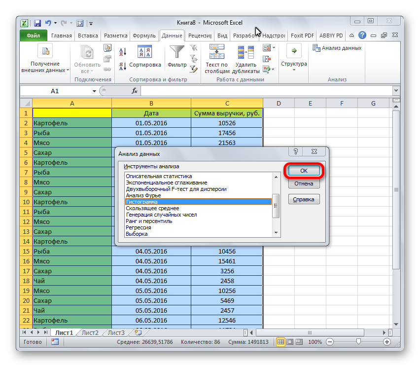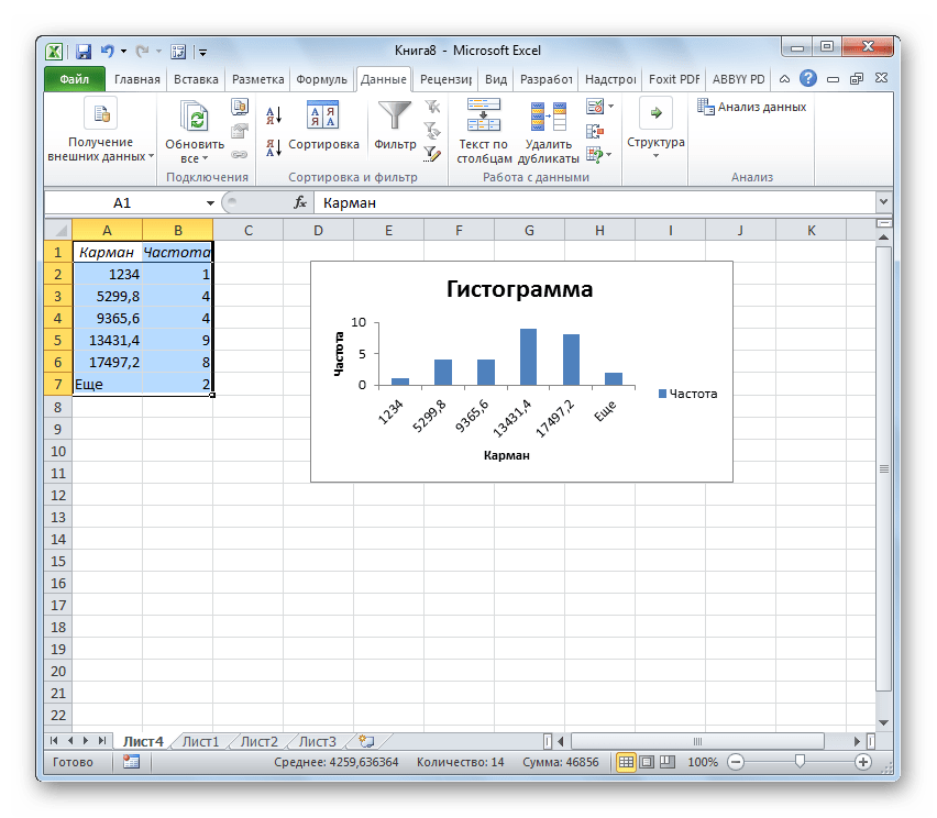 После того, как выбор сделан, на листе Excel формируется гистограмма.