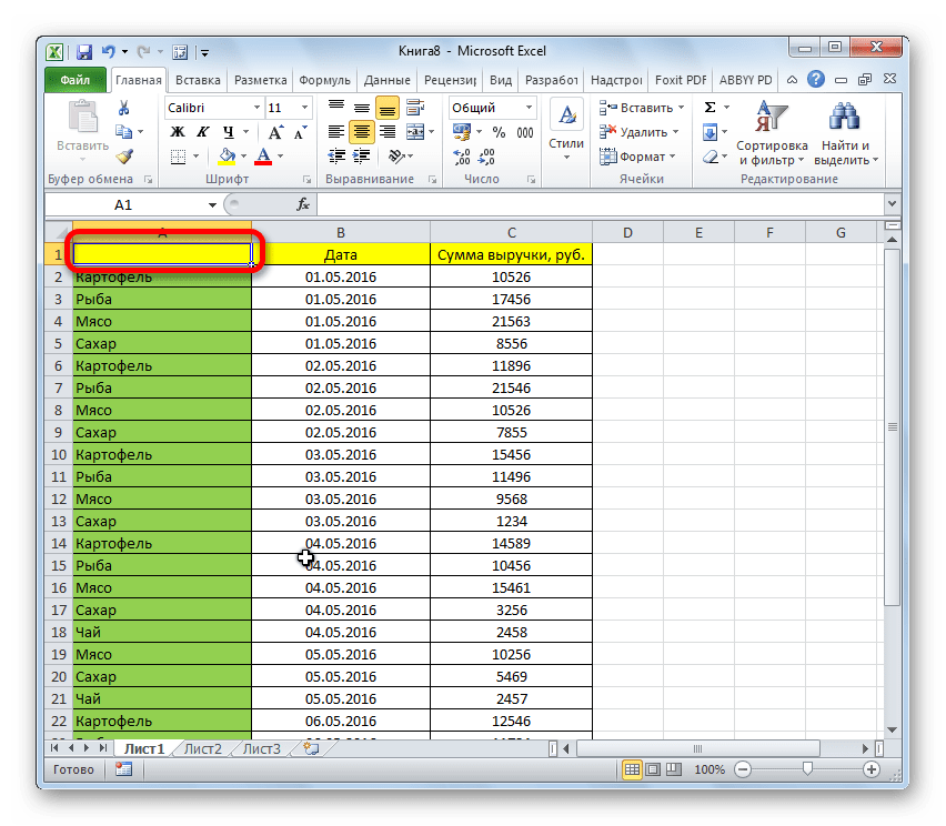 - Перед тем, как перейти к созданию диаграммы с накоплением, нужно удостовериться, что в крайнем левом столбце в шапке отсутствует наименование. Если наименование есть, то его следует удалить, иначе построение диаграммы не получится.