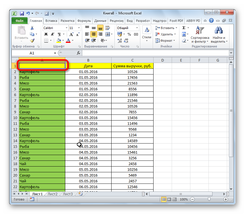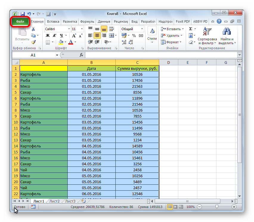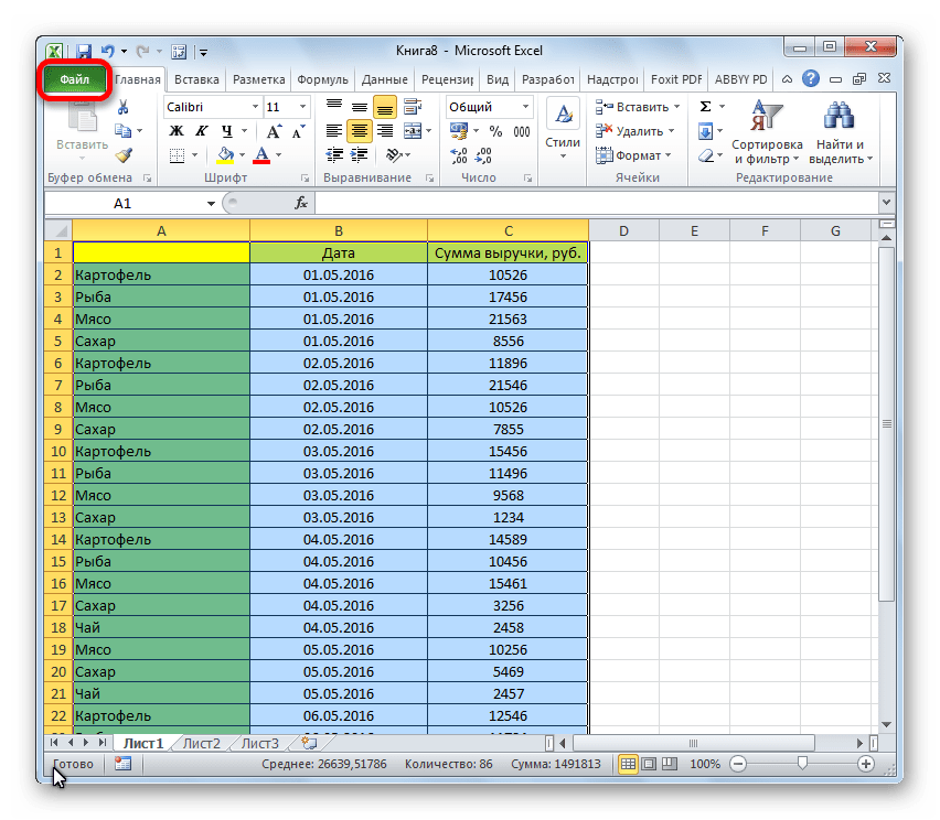 Для начала запустим Excel 2010. Поскольку любая диаграмма использует данные для построения, создадим таблицу с примером данных.