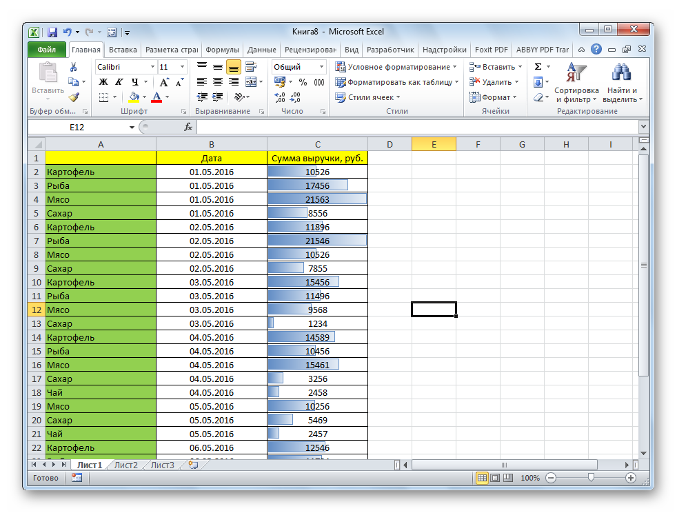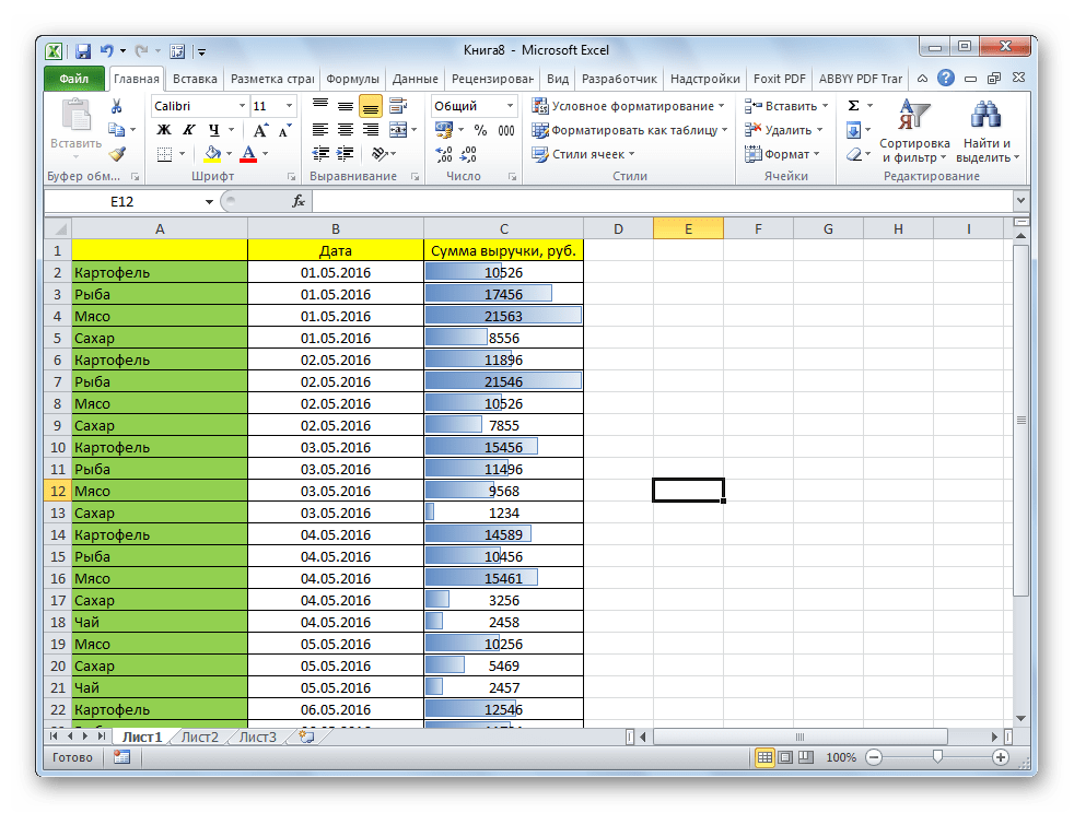 Теперь, как видим, в каждой отформатированной ячейке имеется индикатор, который в виде гистограммы характеризует количественный вес данных, находящихся в ней.