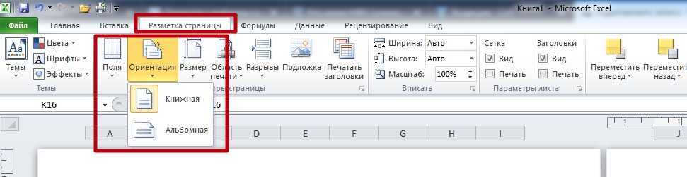 Изменить ориентацию листа в Excel