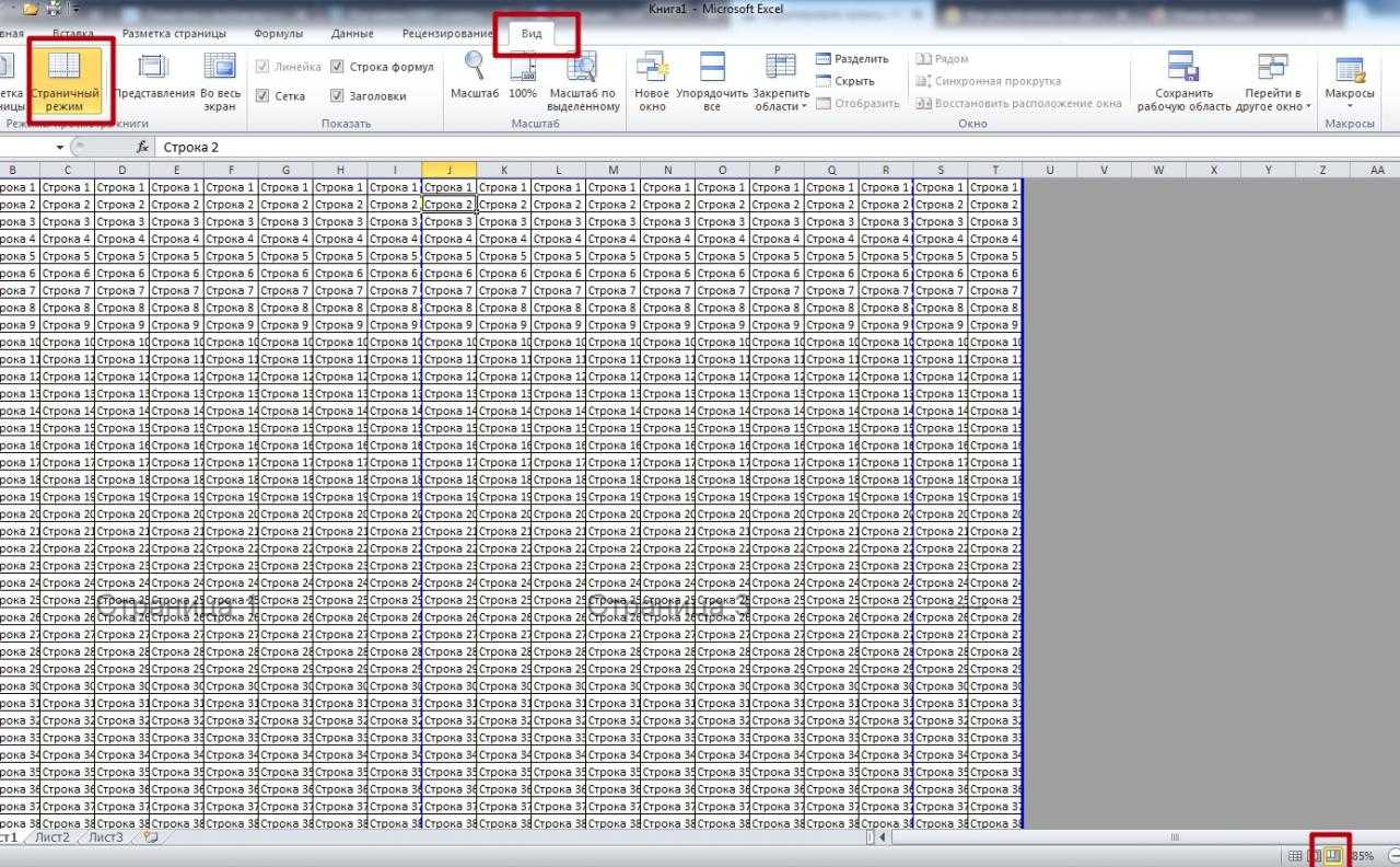 Действия по включению режима страницы в Excel