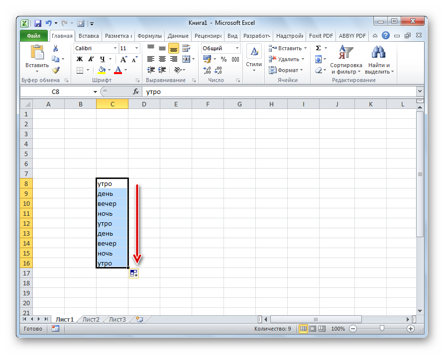 Иногда возникает необходимость скопировать содержимое в несколько смежных ячеек листа. Вы можете копировать и вставлять данные в каждую ячейку по отдельности, но есть способ гораздо проще. Для этого необходимо воспользоваться маркером автозаполнения, который позволяет быстро скопировать и вставить данные.