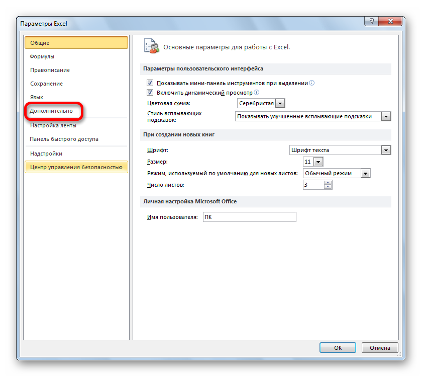 - Выберите раздел «Дополнительно» и убедитесь, что во вкладке «Параметры редактирования» установлены галочки рядом с «Автозаполнение значений ячеек» и «Автоматическое завершение Flash»