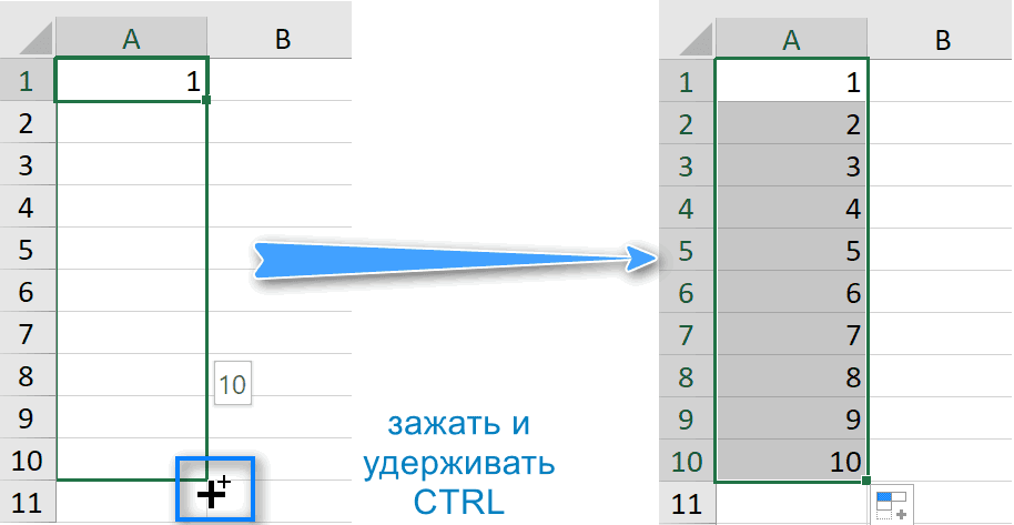 Но есть метод побыстрее: удержание кнопки Ctrl с параллельным протягиванием ячейки.