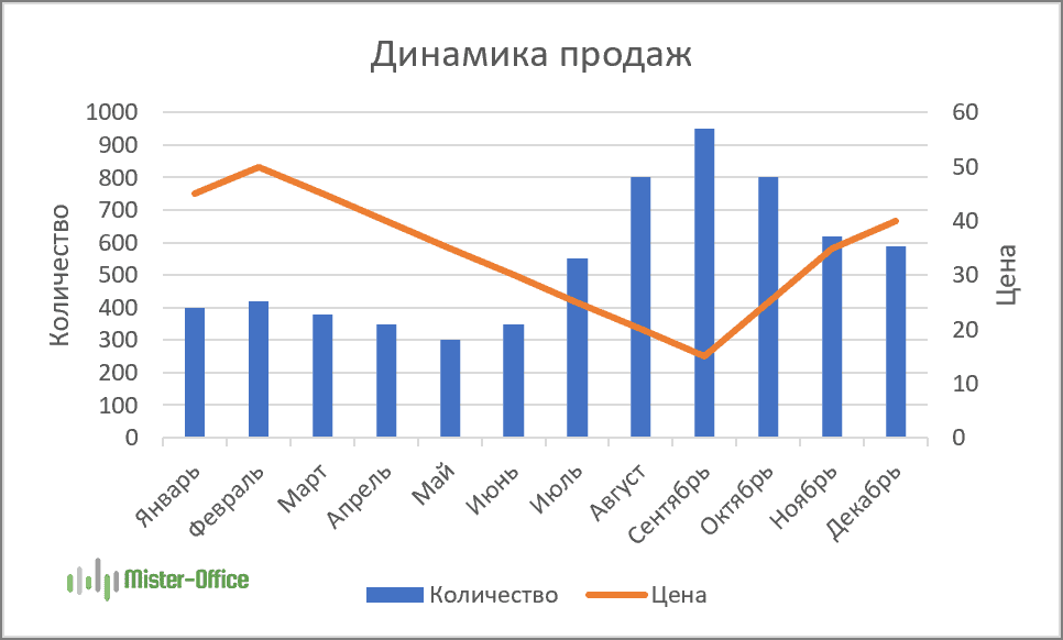 В Microsoft Excel 2010 и более ранних версиях создание комбинированной диаграммы было трудоемкой задачей. Все решалось добавлением второй оси на график. В Excel 2013 — Excel 365 эти сложныерекомендации превращаются в четыре быстрых шага.
