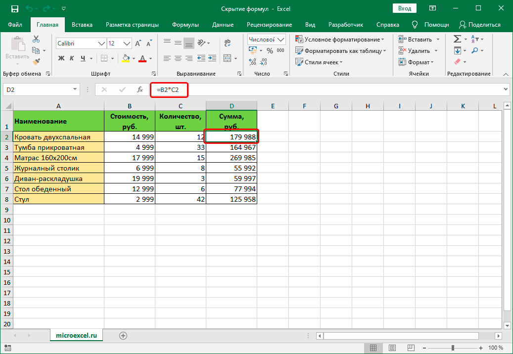 Скрыть формулы в Excel