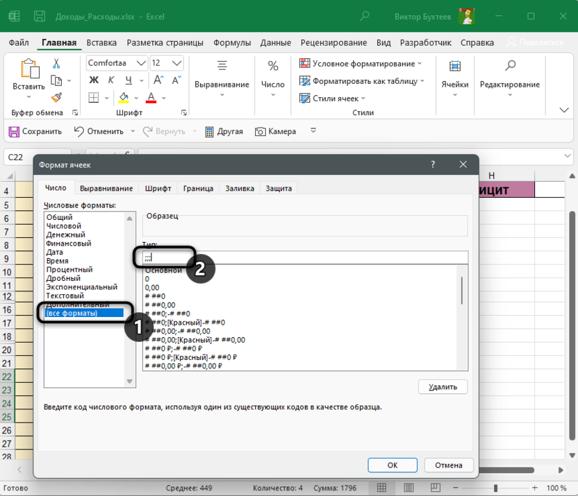 Обязательно выделите пункт «Все форматы», после чего в поле «Тип» введите «;;;» (без кавычек).