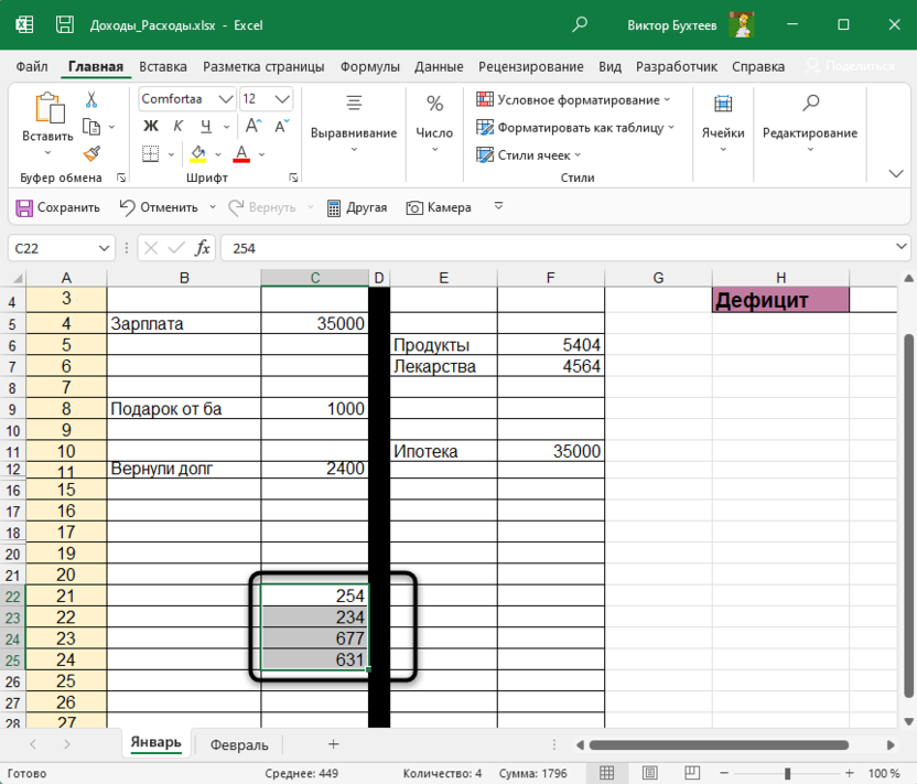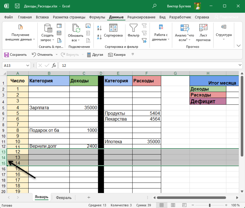 Часть ячеек скрылась, однако все формулы остались, и расчеты не изменились.