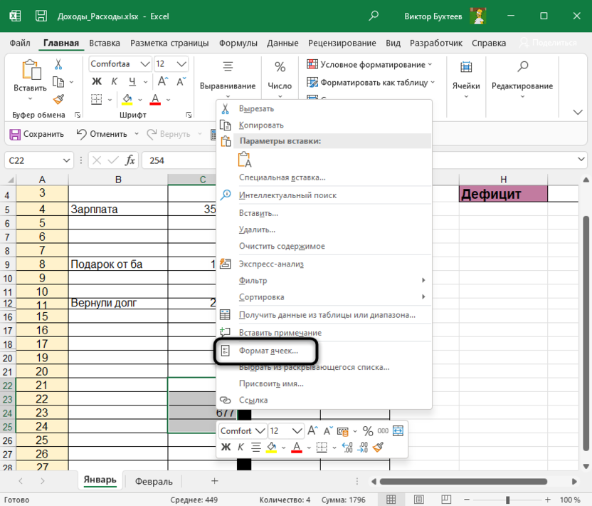Выделите ячейки с числами и щелкните по любой из них правой кнопкой мыши.
