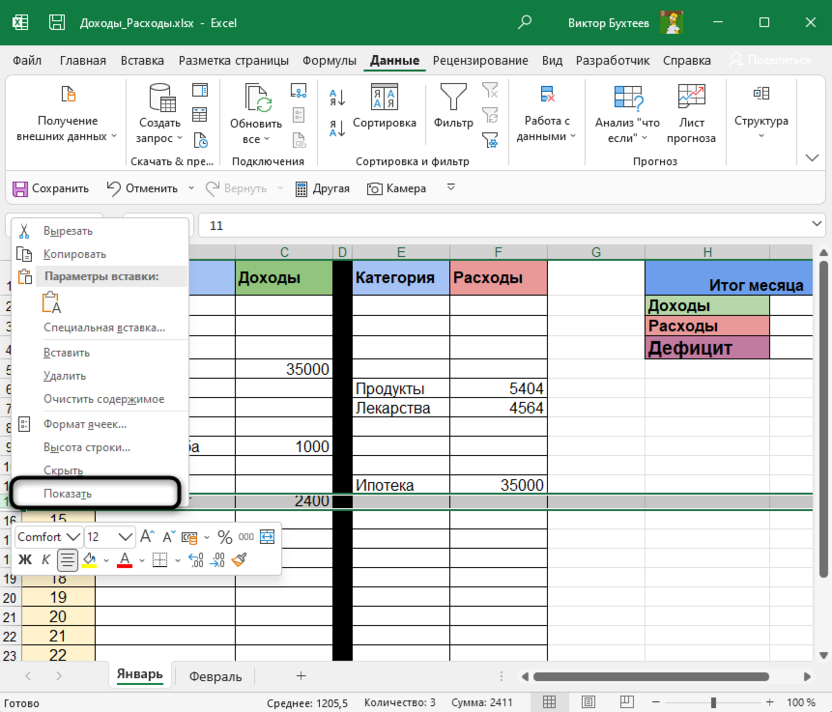 Их всегда можно сделать видимыми, выбрав из контекстного меню пункт «Показать». Однако учитывайте, что после его активации отобразятся абсолютно все скрытые строки данного листа.