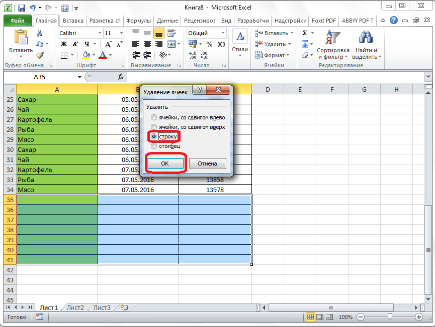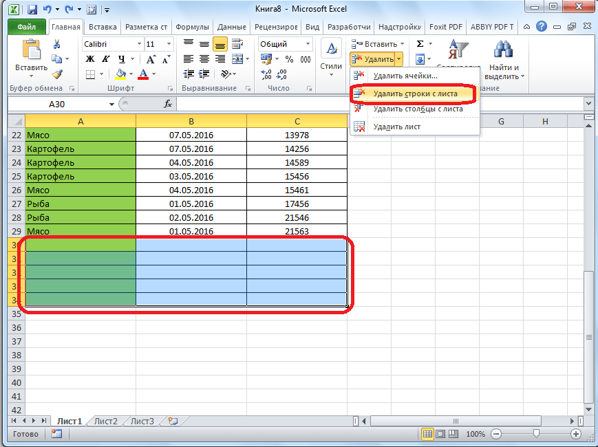 После того как пустые строки выбраны, выделите их и удалите, как это показано на примерах выше.
