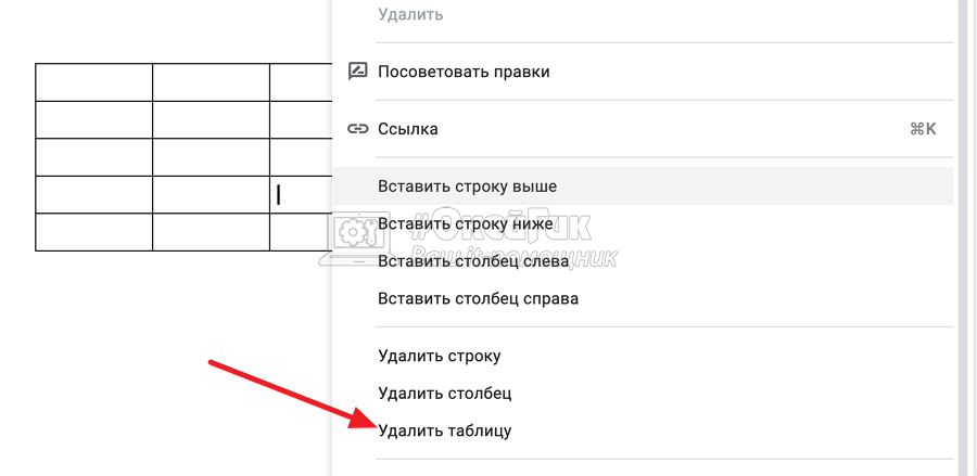 Если таблица была вставлена неправильно, не в том месте или не того размера, можно ее удалить и переделать. Для удаления таблицы из Google Docs нажмите правой кнопкой мыши в ней в любом месте и выберите “Удалить таблицу”.