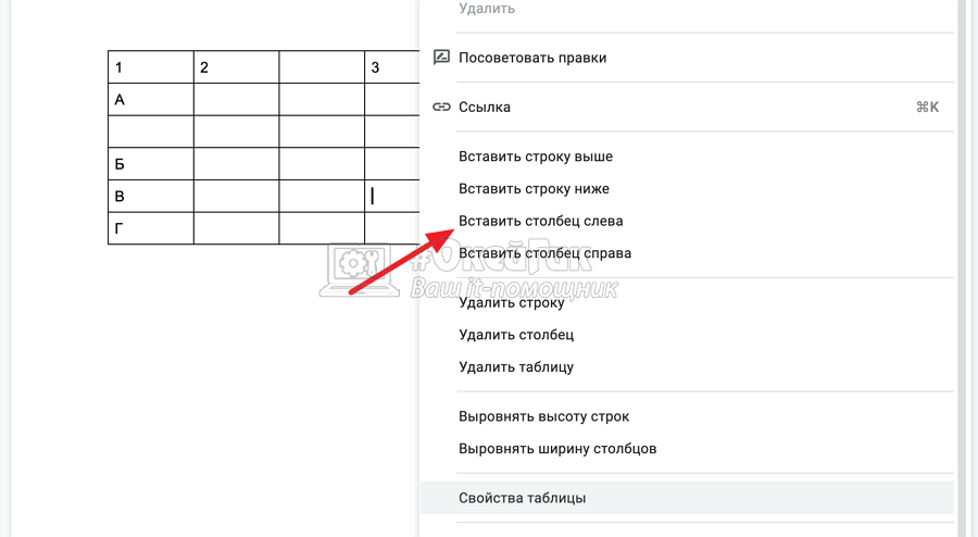 Чтобы вставить новый столбец в таблице Google Docs, нужно поступить похожим образом. Установите курсор в нужном месте, чтобы слева или справа от него вставить столбец. Нажмите правой кнопкой мыши на курсор и выберите “Вставить столбец слева” или “Вставить столбец справа”.