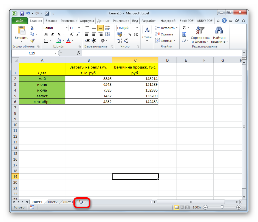 После этого, новый лист будет добавлен в список уже имеющихся элементов над строкой состояния.