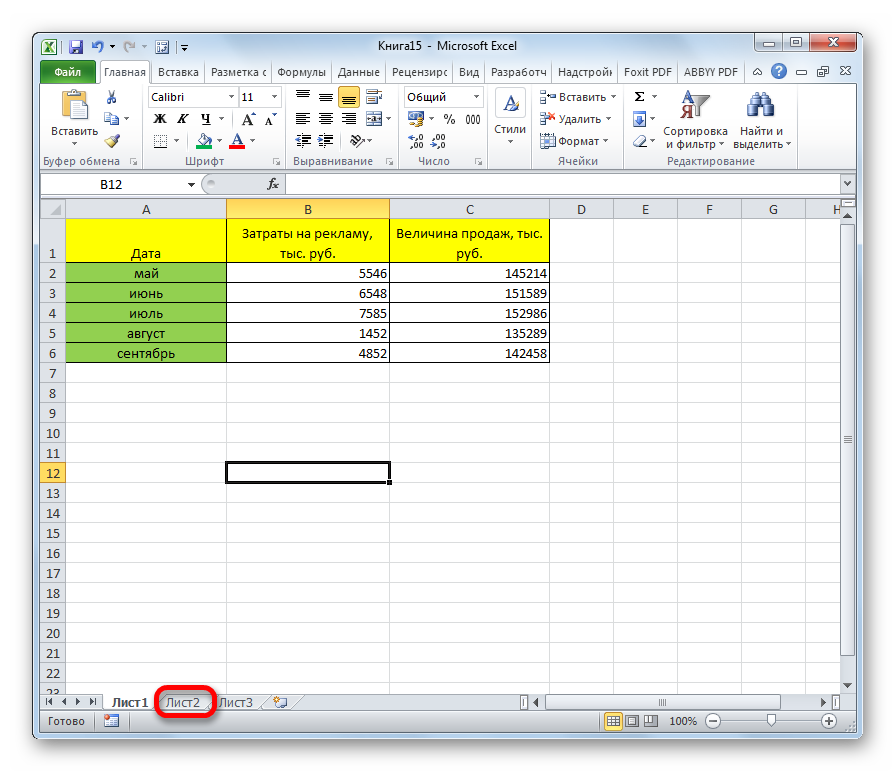 Как переключатся между листами, знает большинство пользователей. Для этого нужно кликнуть по одному из их наименований, которые расположены над строкой состояния в нижней левой части экрана.
