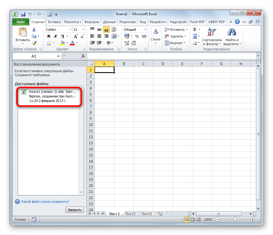 Способ 1: восстановление несохраненного документа после сбоя в работе