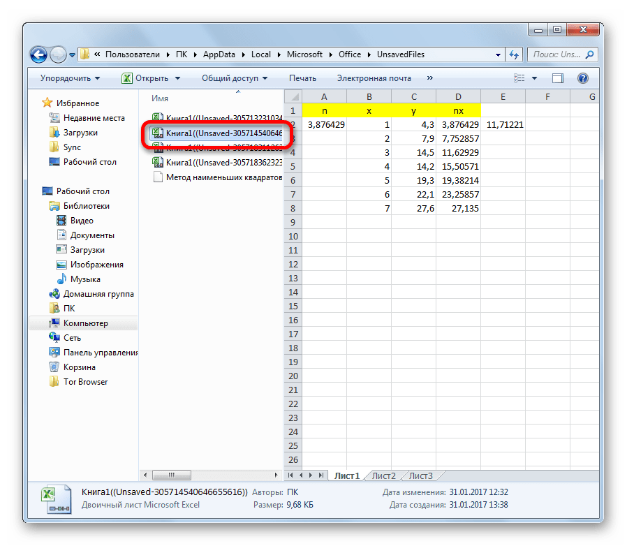 Если вы увидите в папке несколько файлов, то нужен последний по дате появления. Если файл имеет расширение .xar, для открытия поменяйте его на .xls. Откройте файл и проверьте его. Если он работоспособен, сохраните его под необходимым именем и пользуйтесь. Если файлов в папке нет, поищите их на локальном диске через поиск.