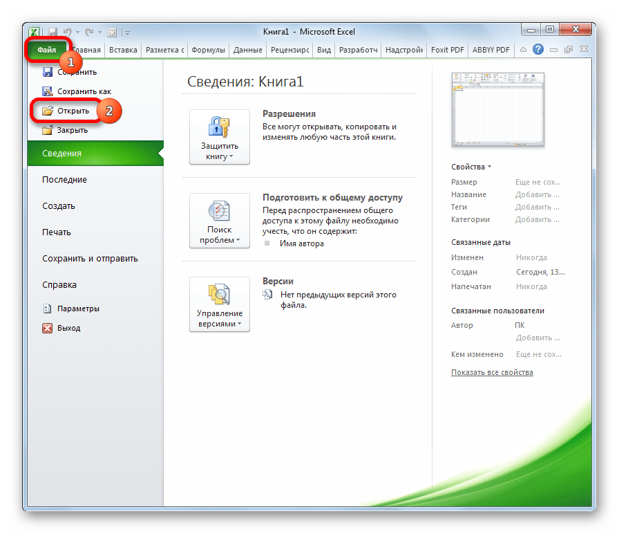 Шаг 1. Запустить Microsoft Excel и перейти на вкладку «Файл».