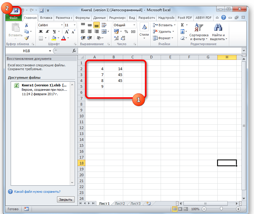Современные версии Excel, начиная с 2007, после перезапуска компьютера, к счастью, могут просто автоматически предложить вам из выпавшего меню: «Excel восстановил следующие файлы. Сохраните требуемые». Если вы нашли в списке ваш последний документ, то смело нажимайте подтверждение и предоставьте программе дальше сделать всё самостоятельно. Проверьте файл. Скорее всего, вы потеряете минимум данных. Пересохраняйте документ и смело пользуйтесь.