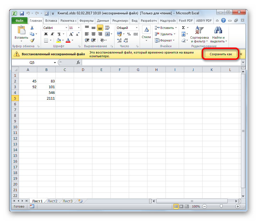 Если пользователь не сохранил книгу не из-за сбоя в работе системы, а только потому, что при её закрытии нажал на кнопку «Не сохранять», то восстановить вышеуказанным способом не получится. Но, начиная с версии 2010 года, в Экселе имеется другой не менее удобный инструмент восстановления данных.