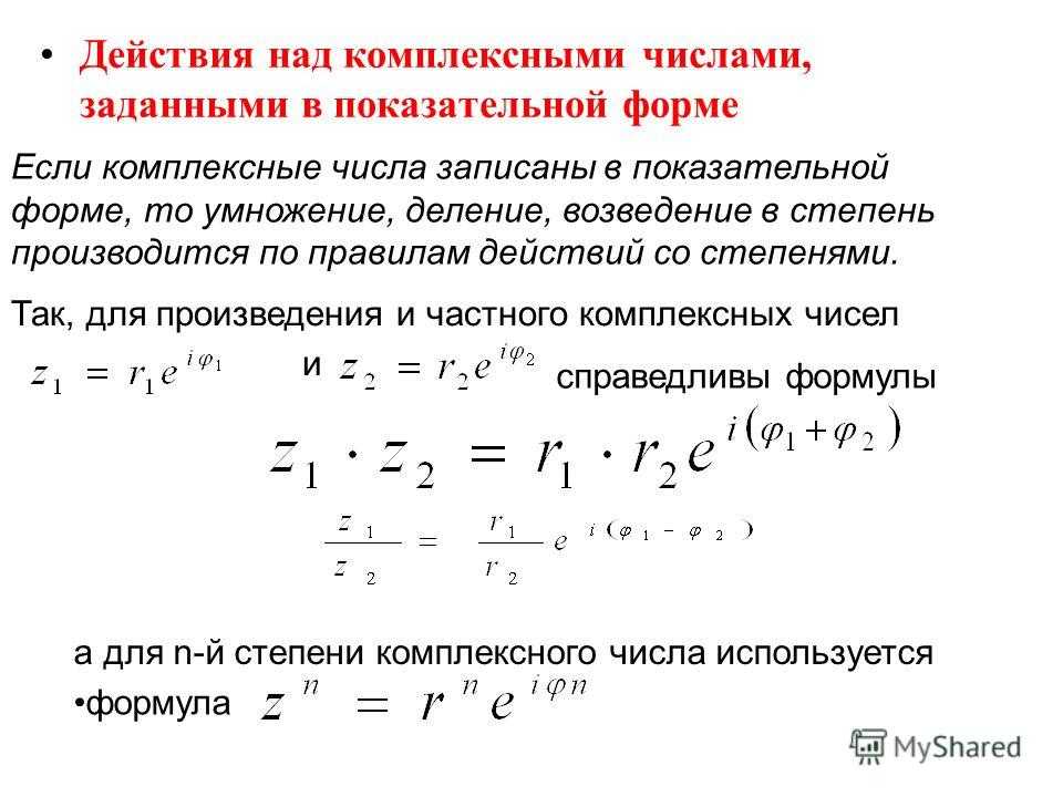 - Показатель степени: ez = ea cos(b) + i ea sin(b)