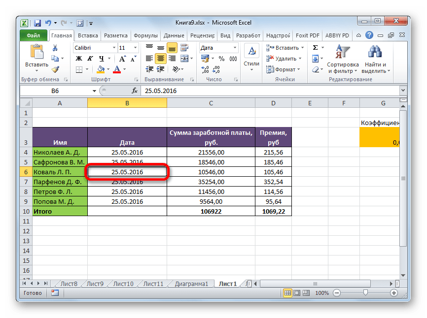 - Для изменения данных в ячейке, делаем ее активной и делаем на ней двойной щелчок;