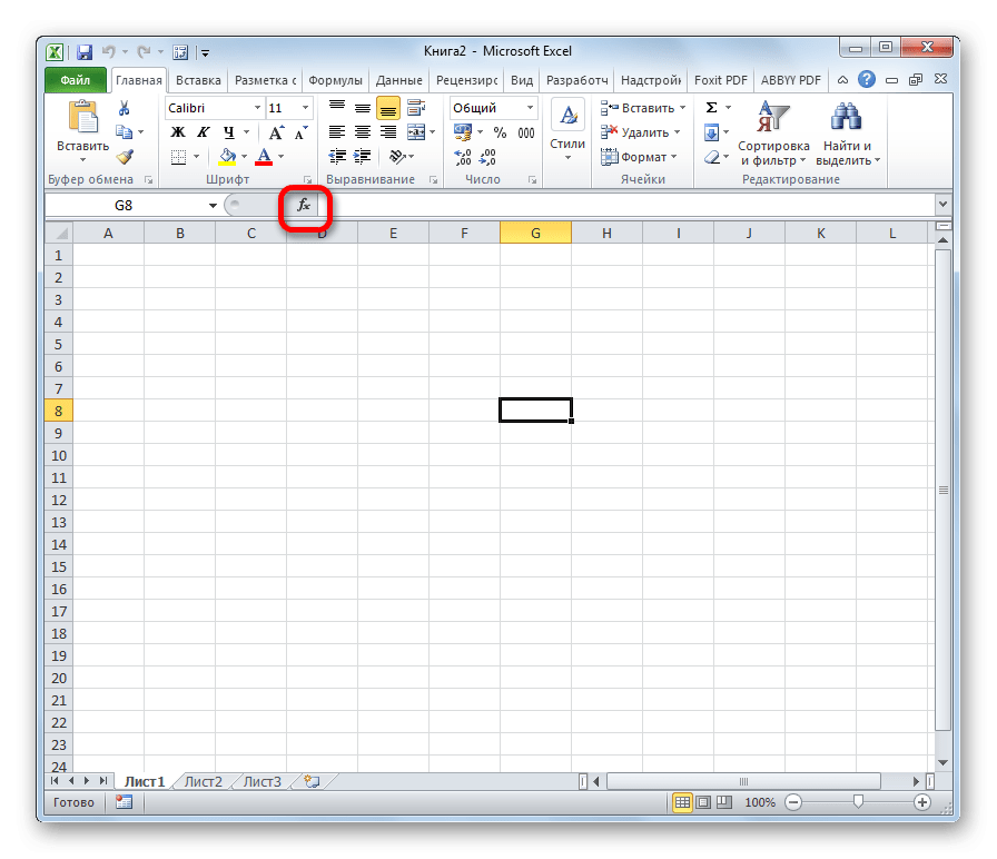 Мастер функций может быть запущен несколькими способами одновременно. Но прежде чем запускать этот инструмент, необходимо выбрать ячейку, в которой будет находиться формула, а значит и отображаемый результат.