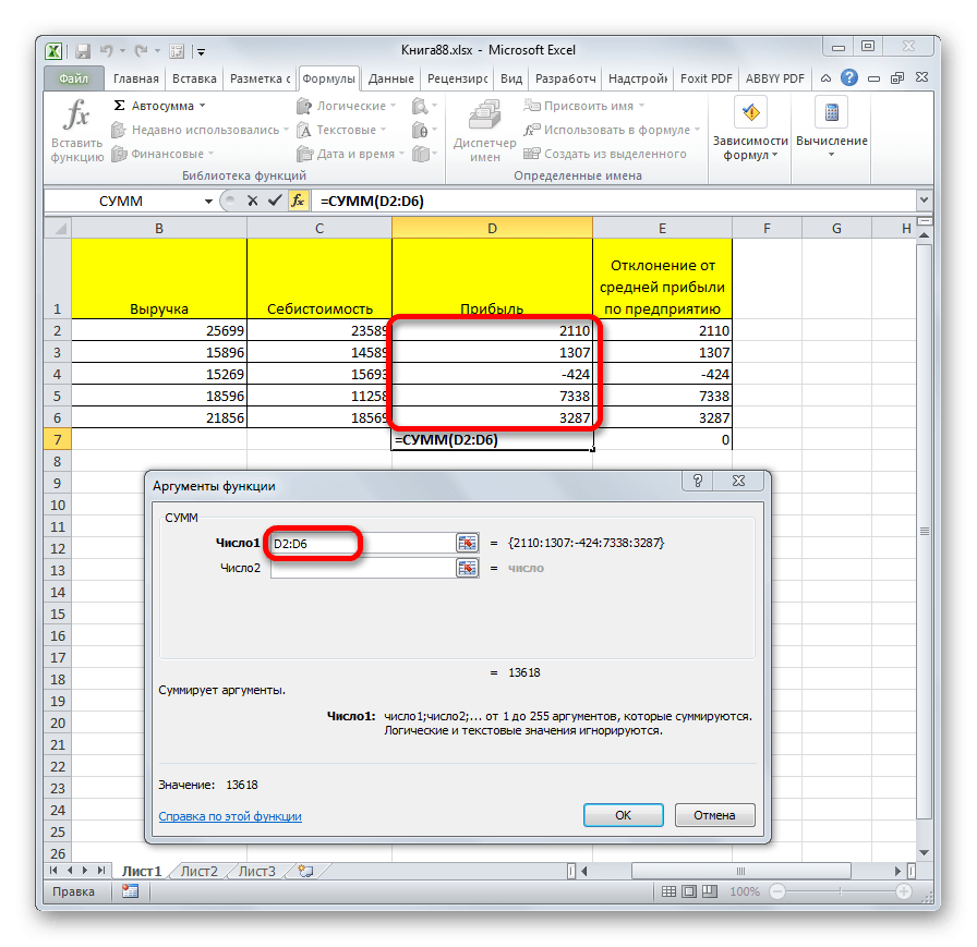 После нажатия на кнопку «OK» мастер закрывается, и выполняется сама функция. Результат выполнения может быть очень разным. Это зависит от задач, которые ставятся перед формулой. Например, выбранная в качестве примера функция СУММ просуммирует все введенные аргументы и отобразит результат в одной ячейке. Результат будет совершенно другим для каждого из других вариантов в мастере.