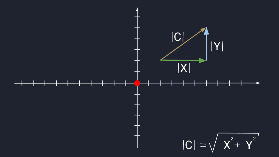 Из вышесказанного выходит, что для того чтобы найти длину вектора с точками (aₓ ; aᵧ), выводим следующую формулу: