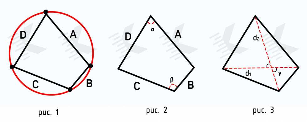Теперь займёмся вариантом когда окружность описана вокруг четырёхугольника. Здесь мы сможем воспользоваться следующей формулой: