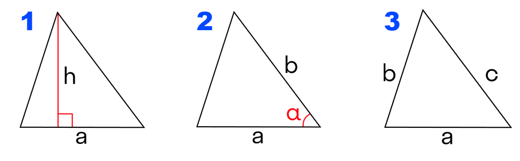 Этот метод удобен для вычисления площади треугольника с помощью калькулятора площади треугольника, так как он требует минимального количества информации о фигуре.
