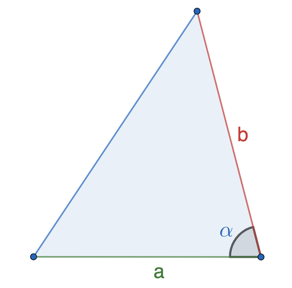 Как вычислить площадь треугольника, если известны длины двух сторон и угол между ними?