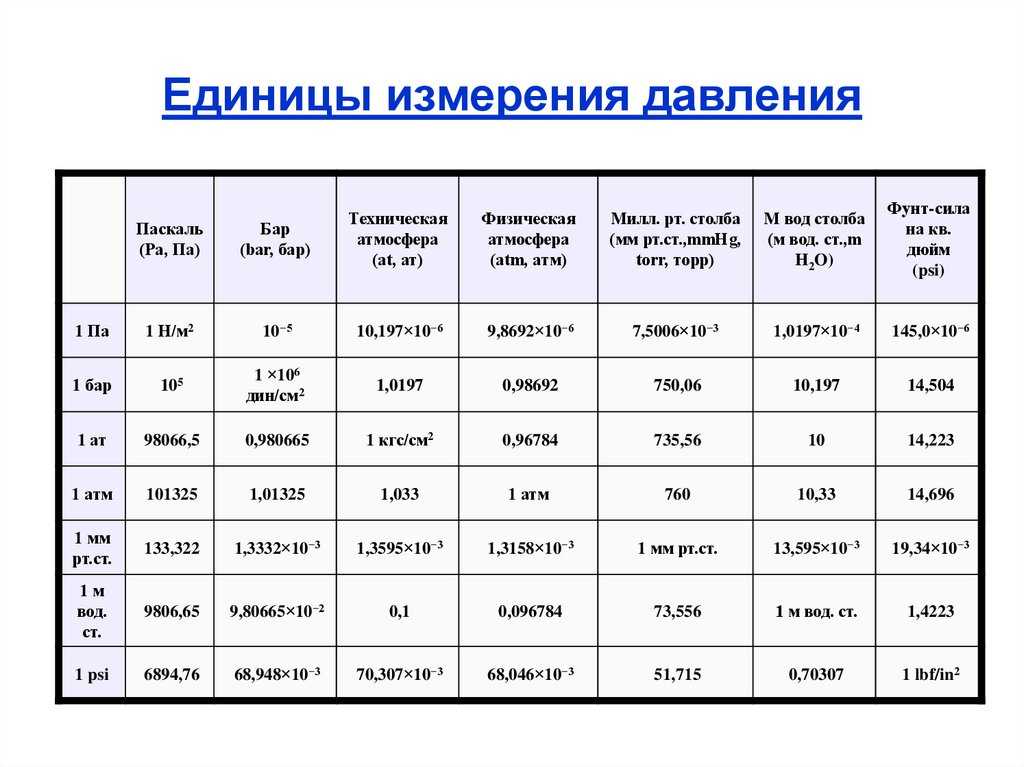 Используя перевод, вы сможете быстро и удобно работать с различными единицами измерения давления, облегчая свою работу и упрощая взаимопонимание с другими специалистами.