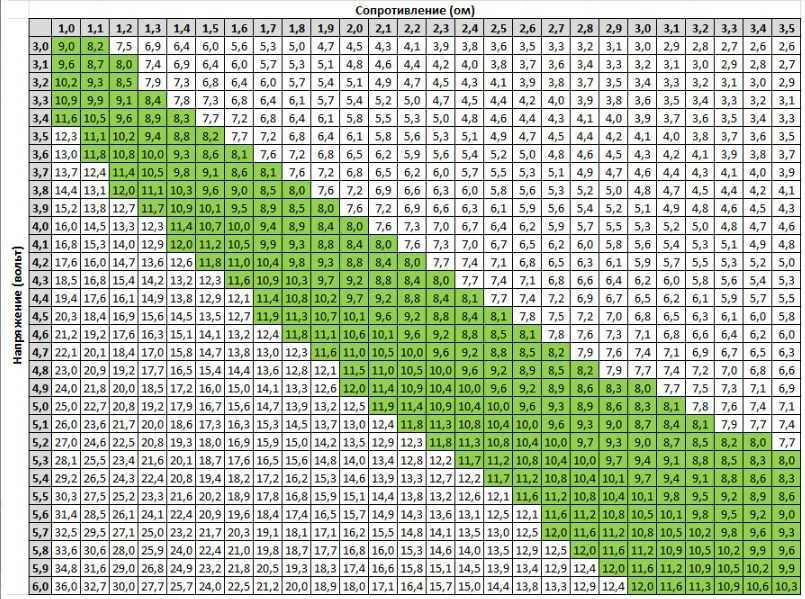 Обратный перевод ватт в амперы осуществляется по обратным формулам с учетом условий подключения (тип соединения).