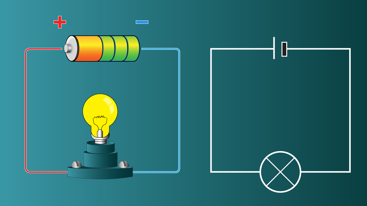 На изображении выше изображена простая электрическая цепь с лампочкой, некоторым проводом и батареей.