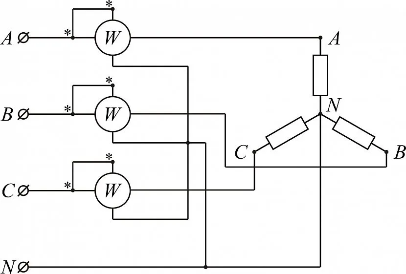 - Для несимметричной нагрузки потребуются три ваттметра (на каждую линию), а все результаты суммируются.