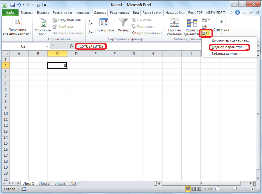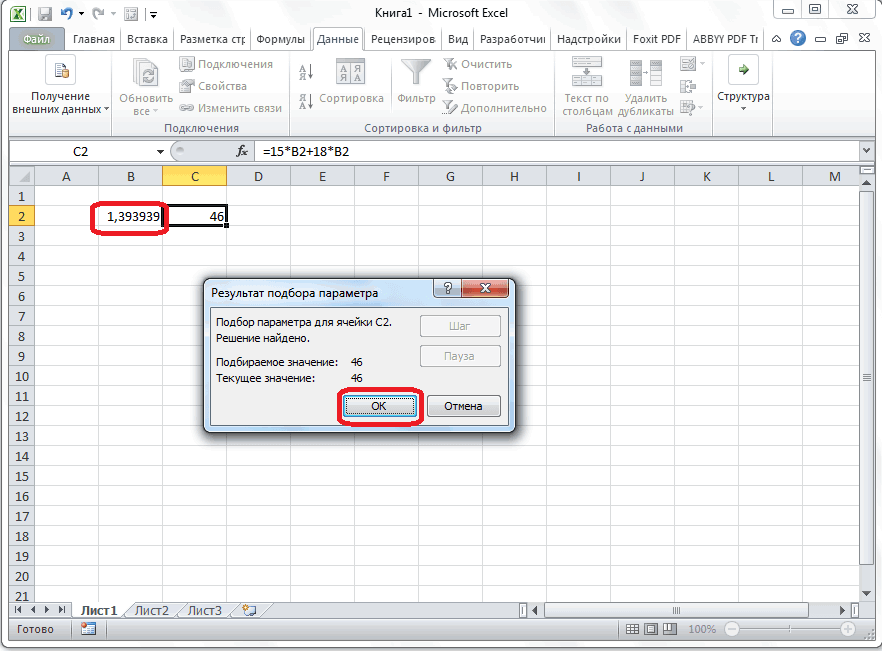 Для этого программа оснащена специальными средствами для анализа данных: первый — это подбор параметра, а второй — поиск решения.