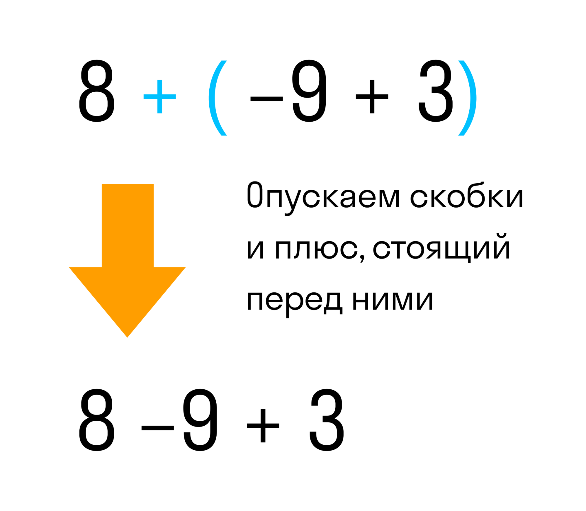 Если перед скобками стоит знак плюс, то все числа, которые стоят внутри, сохраняют свой знак.