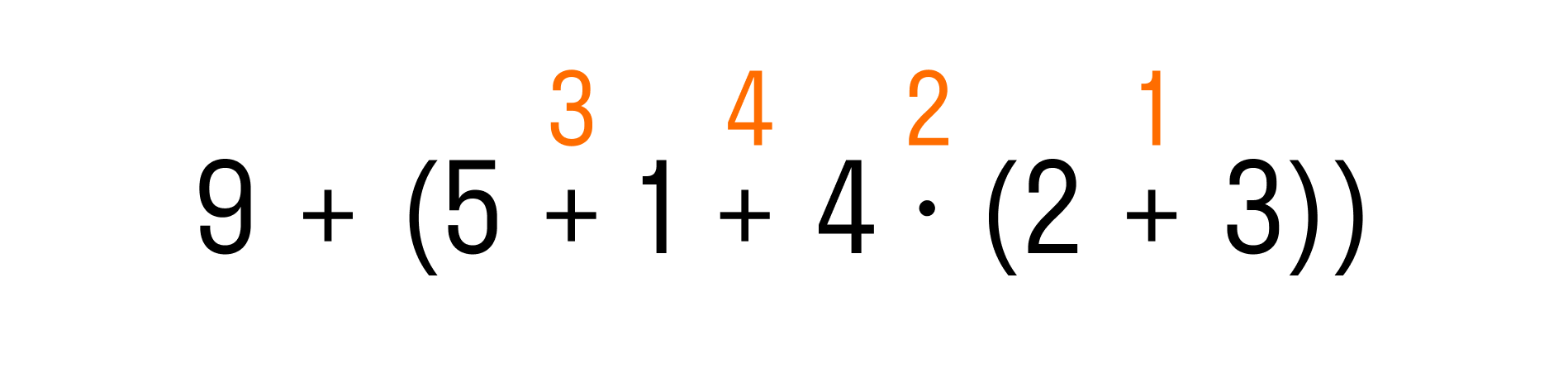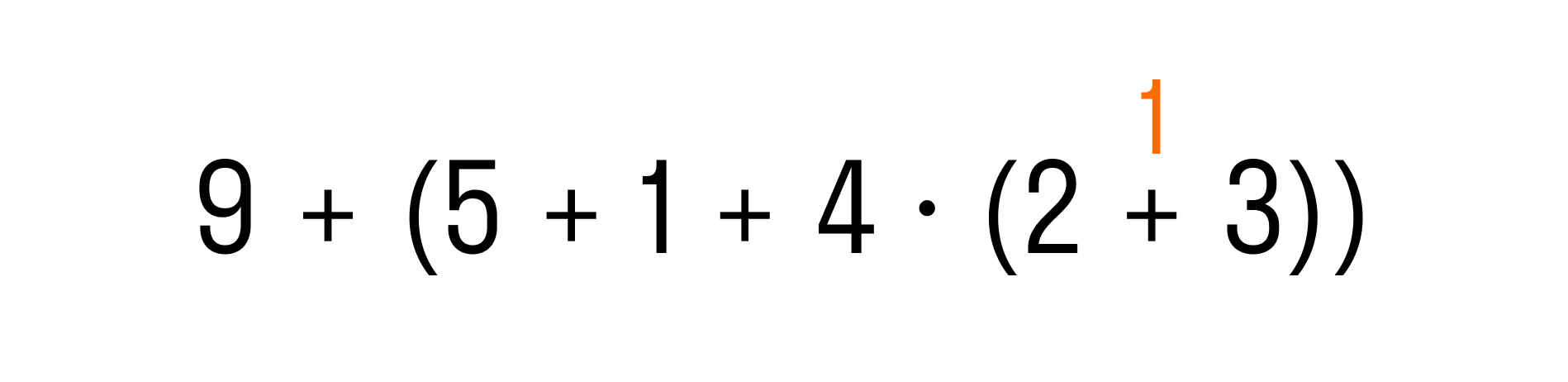 Например, пусть нам нужно выполнить действия в выражении (4+(4+(4−6:2))−1)−1