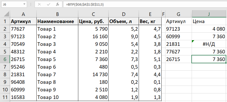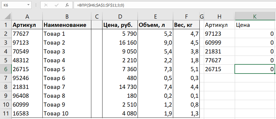 Нужно поднять цены второго стола до первого. Код используется здесь как критерий. Шаги для расчета ВПР показаны ниже.