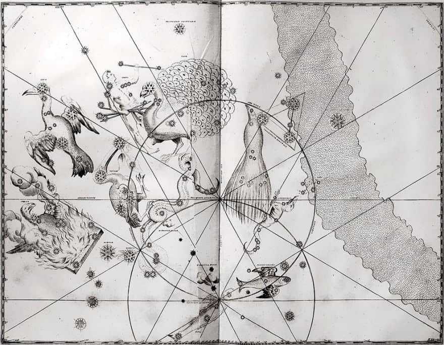 - (1612) Голландский картограф Петер Планциус предложил 8 новых созвездий, из которых два были признаны (Жираф и Единорог). Не получили признания: Петух, Северная Муха (её также называли «Пчелой»), Река Иордан (созвездие), Река Тигр, Малый Рак и Южная Стрела.
