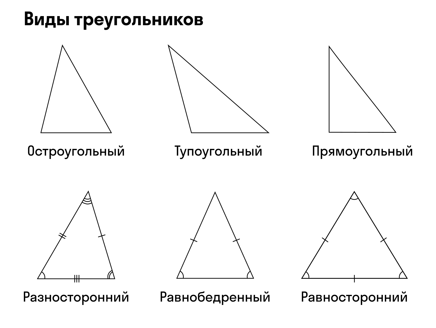 Треугольник — это геометрическая фигура, которая получилась из трех отрезков. Их соединили тремя точками, которые не лежат на одной прямой. Отрезки принято называть сторонами, а точки — вершинами.