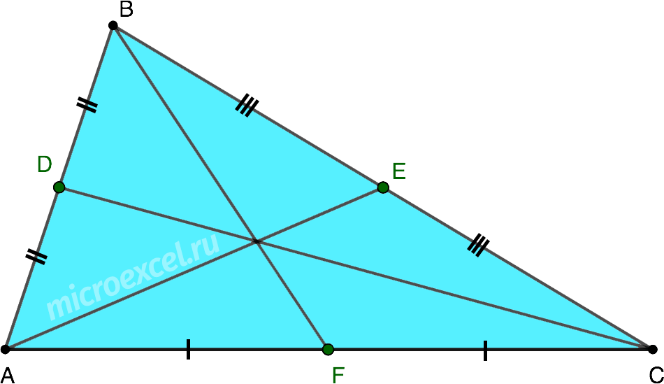 А в следующей задаче пусть у нас будет не одна, а целых три медианы! Как же они себя ведут?