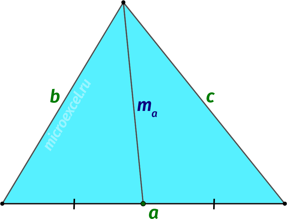 Длину медианы ma, проведенную к стороне a, можно найти по формуле:
