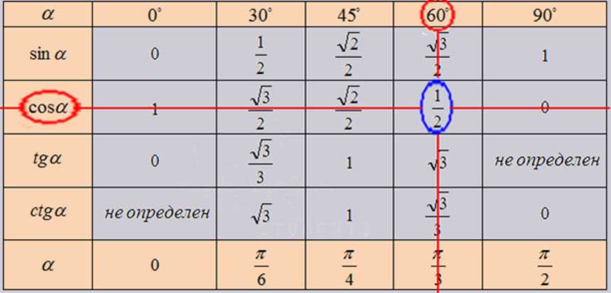 Таблица основных значений синусов, косинусов, тангенсов и котангенсов