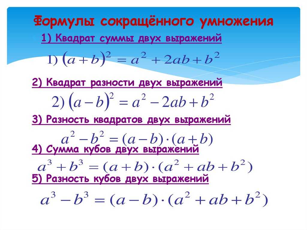 Фсу – формулы сокращённого умножения по алгебре за 7 класс с примерами